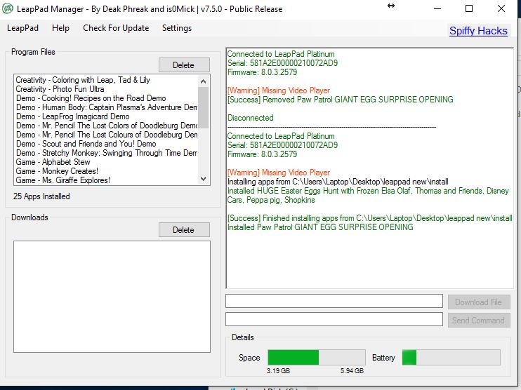 I tried 2 videos again and it made two tar files, however when uploading them to the leappad it created two different video folders.
